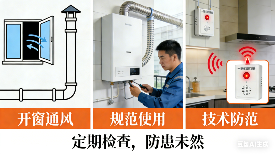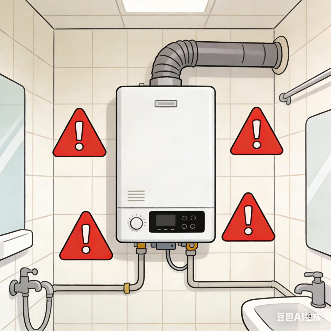 燃气热水器未规范安装、使用(如热水器安装于室内无通风条件的卫生间),或厨房燃气灶排烟不畅,可能造成废气回流室内,引发中毒。