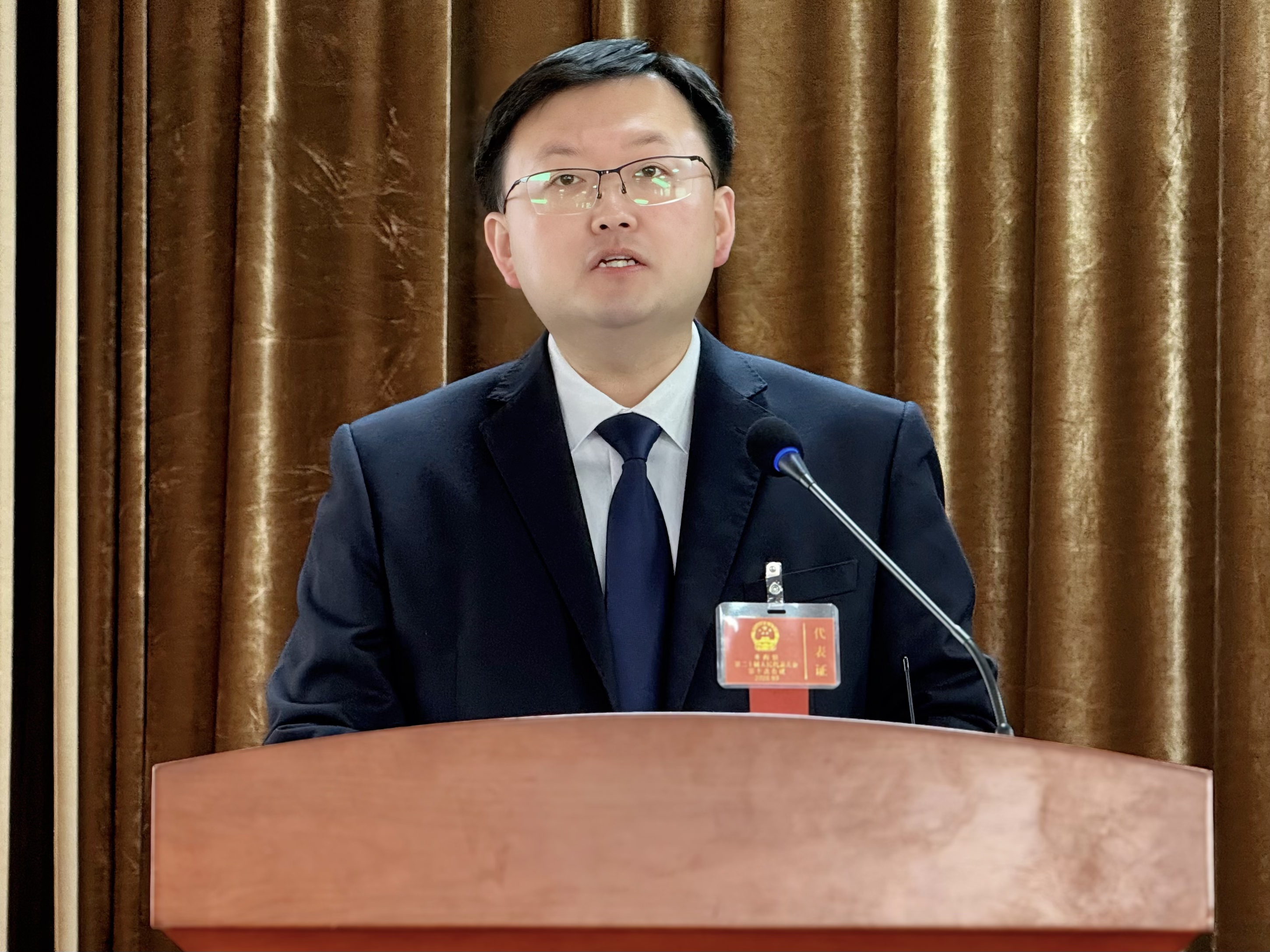 ▲镇党委副书记、镇长何政伟作镇人民政府工作报告