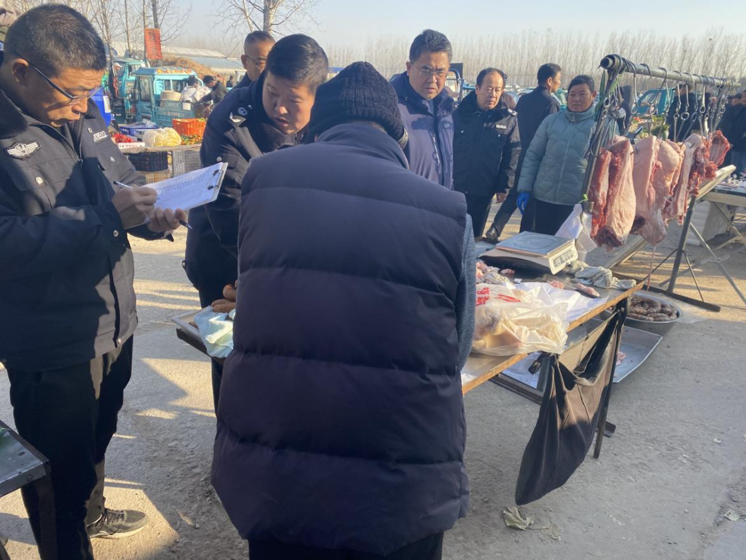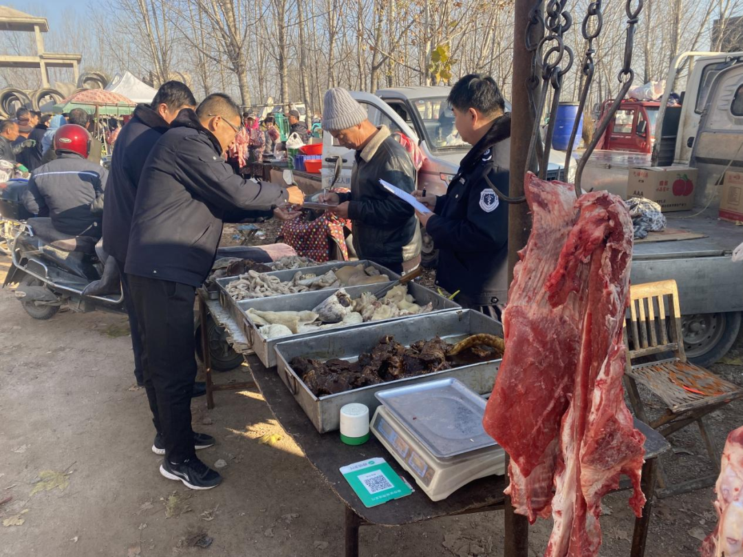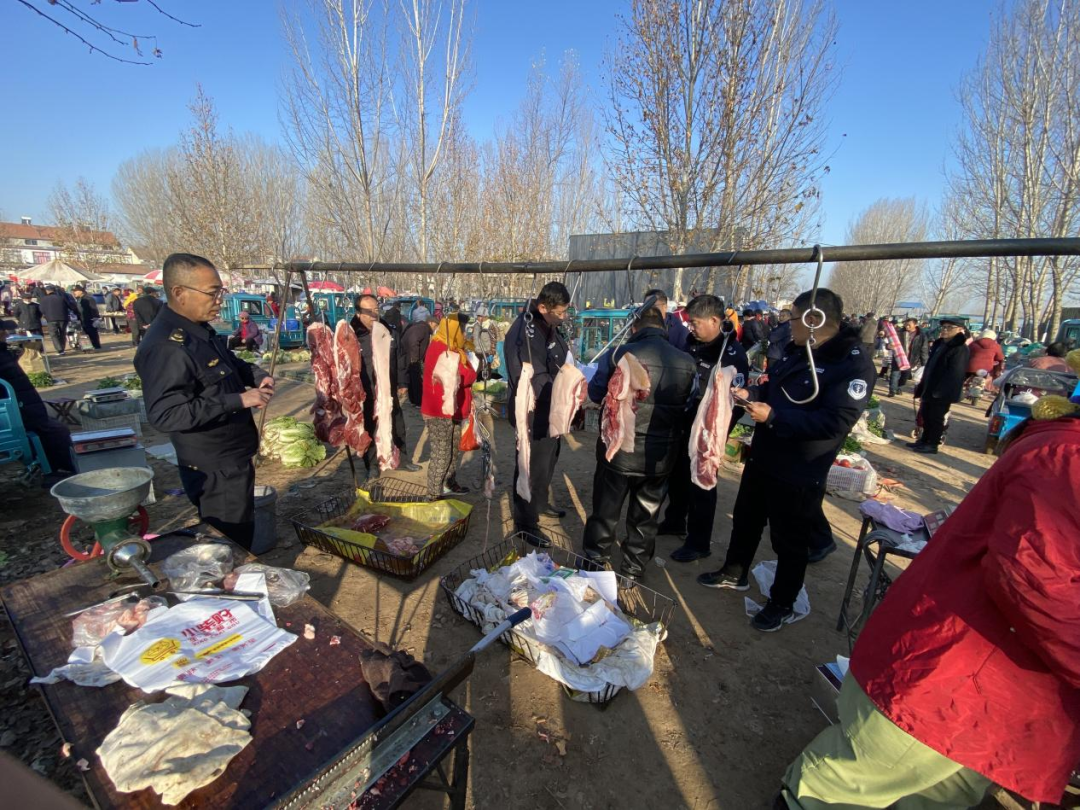 为了加强辖区内的生猪屠宰监督管理,规范生猪屠宰经营秩序,保证生猪产品质量安全,密水街道兽医站、高密市畜牧业发展中心屠宰管理办公室及市场监管所组成专项整治工作组,对各肉产品摊贩进行了细致的检查。