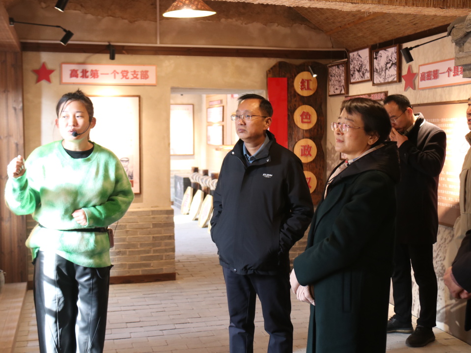 调研组一行在王干坝红色文化教育基地进行参观,实地查看基地场馆建设、历史资料留存、红色文化活动开展等情况,对姜庄镇红色研学点位打造工作情况进行深入考察。