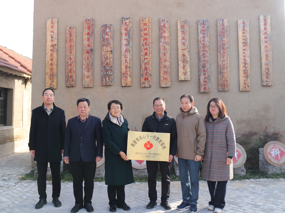 万丽为王干坝红色文化教育基地“高密市关心下一代教育基地”进行授牌,对姜庄镇关心下一代教育工作表示肯定。