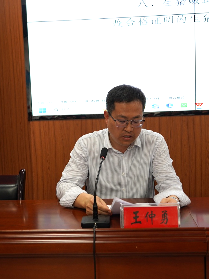 会议系统部署动物调运全链条监管工作,重点开展政策法规、制度规范解读及实务操作培训。党委委员张宝生强调,从业人员要把握生猪产业高质量发展要求,严格执行质量安全标准,切实履行行业“纽带”责任,坚决守住动物疫病防控和食品安全底线。兽医技术服务科、畜禽屠宰服务科负责人围绕《生猪贩运经纪人告知书》《中华人民共和国动物防疫法》等法规文件,结合规范管理制度,通过典型案例开展警示教育,切实增强从业人员依法从业意识。