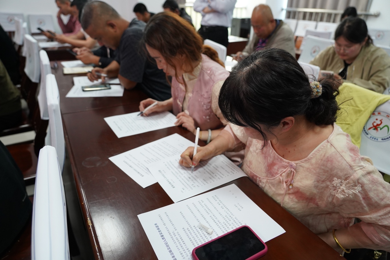 会议组织全体参训人员开展法规知识闭卷考核,42名生猪贩运经纪人现场签订《畜禽运输及经纪人质量安全承诺书》,进一步压实主体责任。
