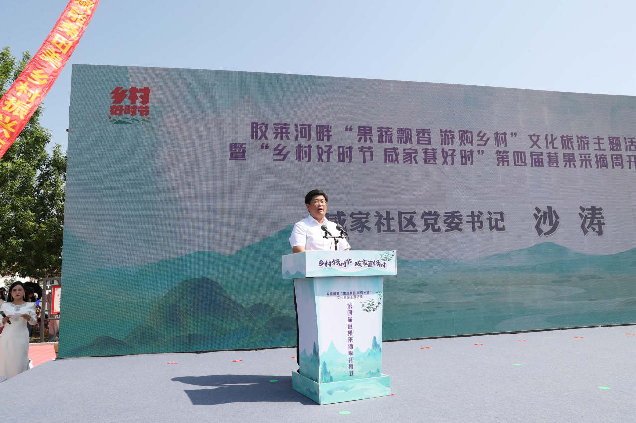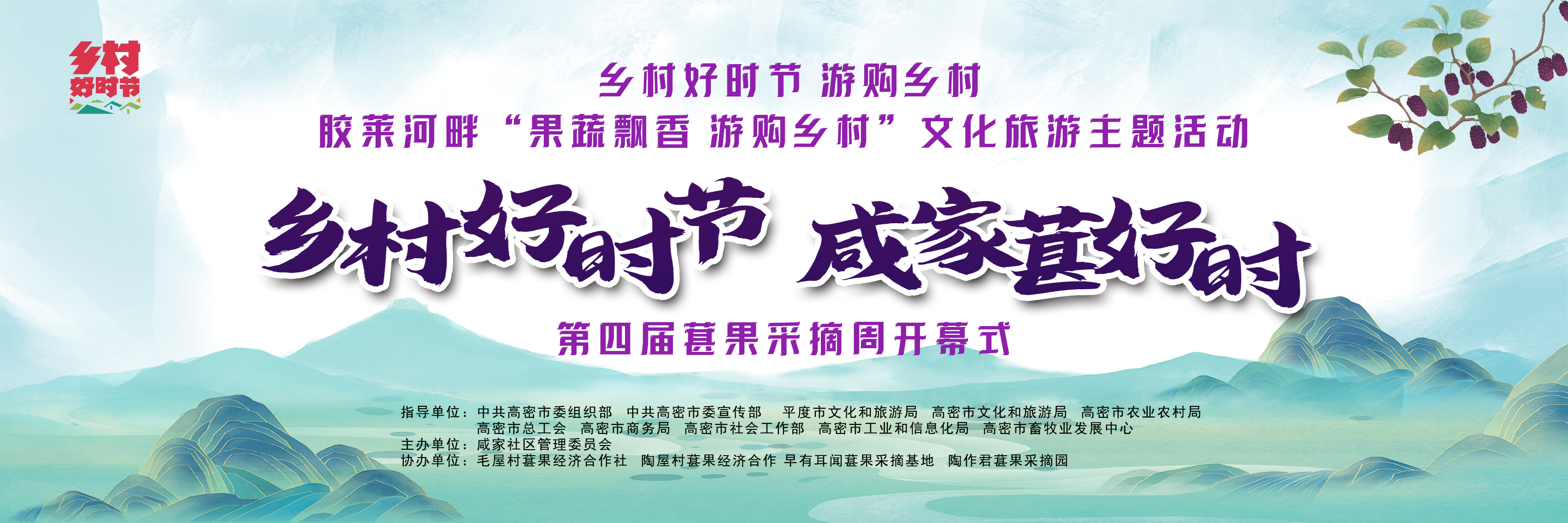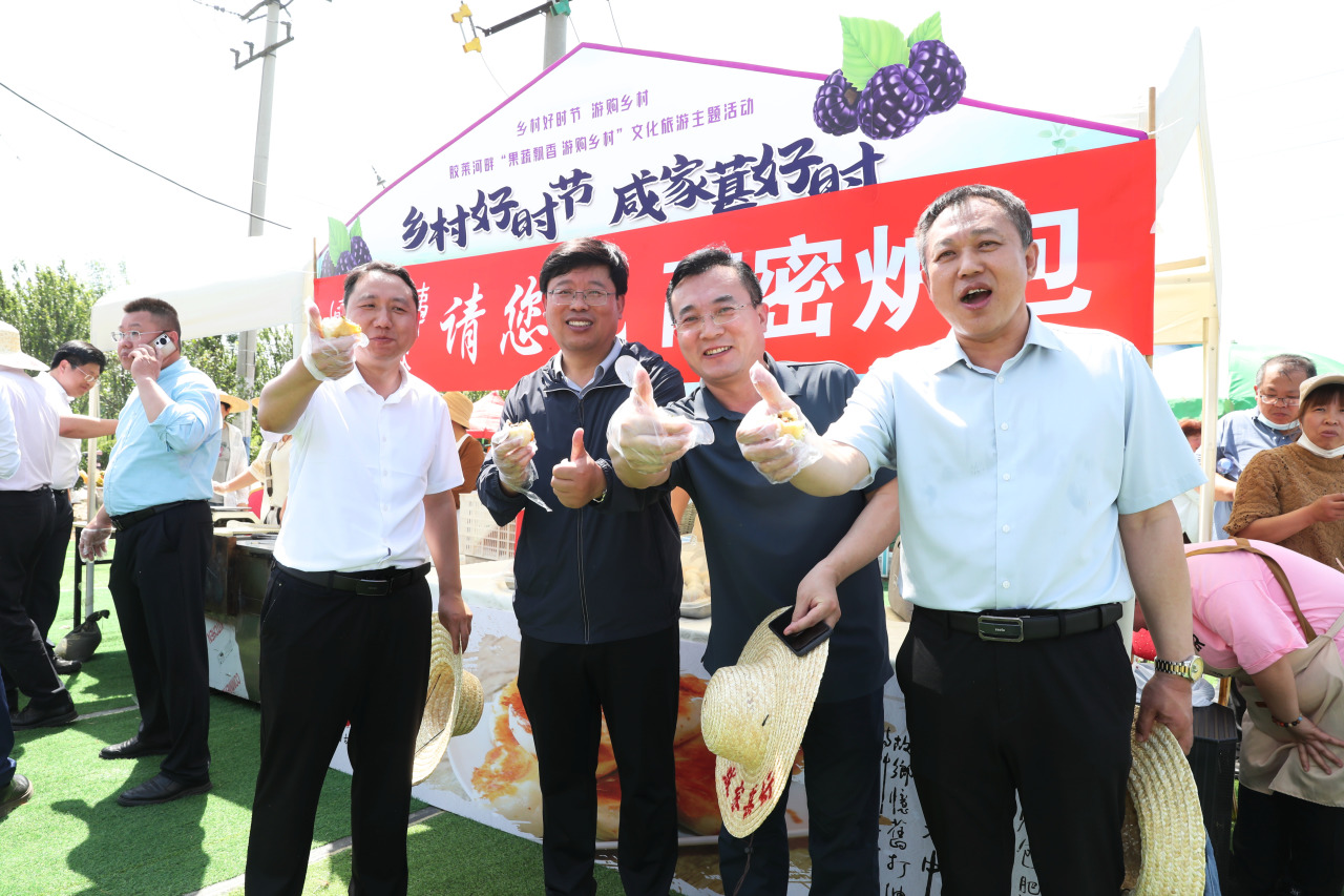 孟夏时节,万物并秀。在这充满生机与希望的美好季节,胶莱河畔“果蔬飘香 游购乡村”文化旅游主题活动暨“乡村好时节 咸家葚好时”第四届葚果采摘周盛大开幕。山东省乡村旅游协会秘书长吕升轩;高密市政府党组成员、副市长李文平;潍坊市文旅局副县级干部黄泽明;青岛农业大学食品质量与安全系主任、教授郭丽萍;平度市文化和旅游局党组书记、局长李培强;咸家社区党委书记沙涛;市委社会工作部部长、“两新”工委书记李彬;市委组织部副部长、编办主任陈涛;市总工会党组书记、常务副主席苏钊;市委宣传部副部长,市文化和旅游局党委书记、局长,市文化和旅游产业发展中心党支部书记、主任于义;市委组织部副部长唐召康;咸家社区党委副书记、管委会主任尚成龙出席活动。