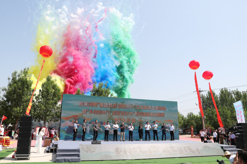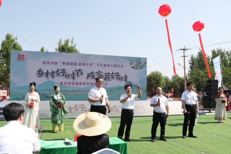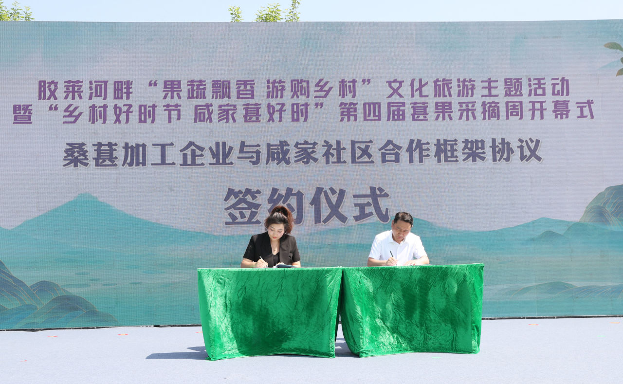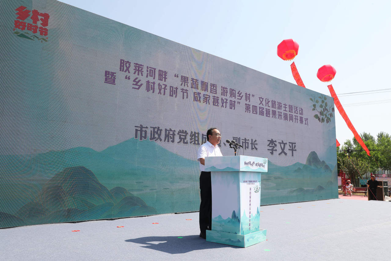 孟夏时节,万物并秀。在这充满生机与希望的美好季节,胶莱河畔“果蔬飘香 游购乡村”文化旅游主题活动暨“乡村好时节 咸家葚好时”第四届葚果采摘周盛大开幕。山东省乡村旅游协会秘书长吕升轩;高密市政府党组成员、副市长李文平;潍坊市文旅局副县级干部黄泽明;青岛农业大学食品质量与安全系主任、教授郭丽萍;平度市文化和旅游局党组书记、局长李培强;咸家社区党委书记沙涛;市委社会工作部部长、“两新”工委书记李彬;市委组织部副部长、编办主任陈涛;市总工会党组书记、常务副主席苏钊;市委宣传部副部长,市文化和旅游局党委书记、局长,市文化和旅游产业发展中心党支部书记、主任于义;市委组织部副部长唐召康;咸家社区党委副书记、管委会主任尚成龙出席活动。