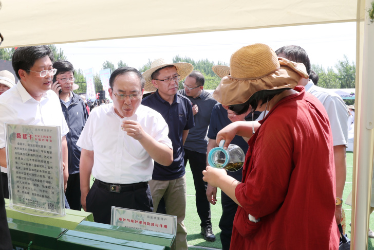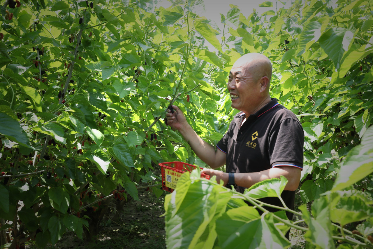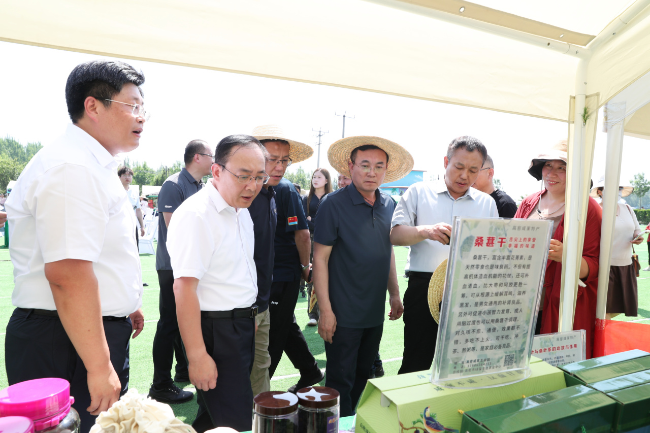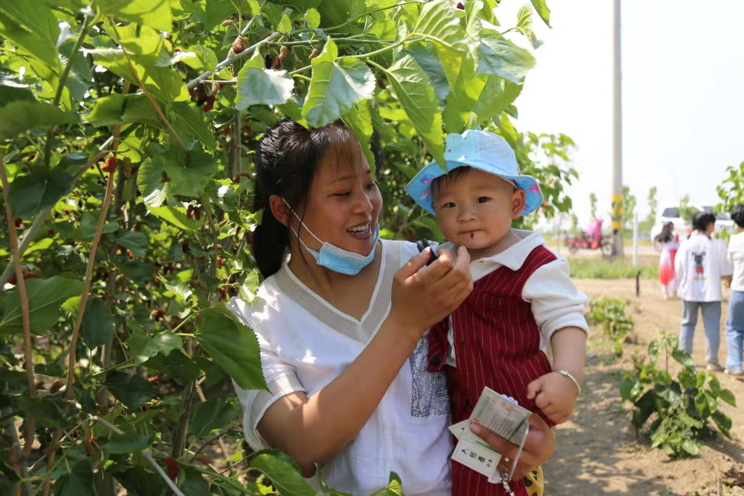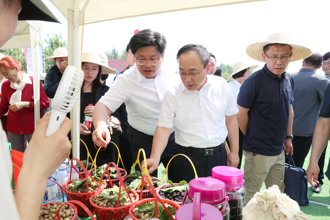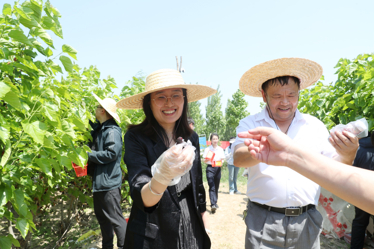 ▲出席领导、嘉宾到早有耳闻采摘基地、陶作君葚果采摘园参观指导