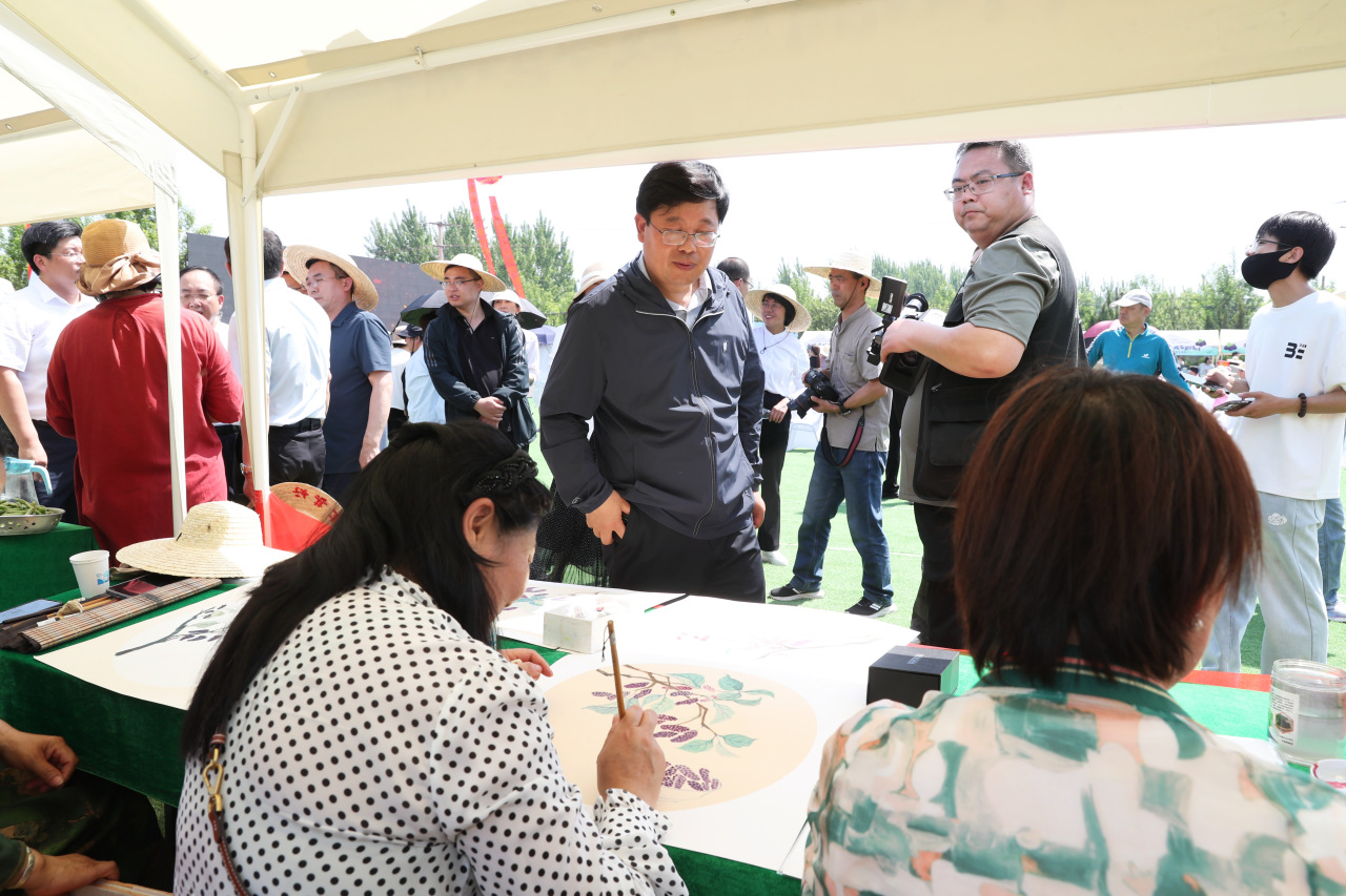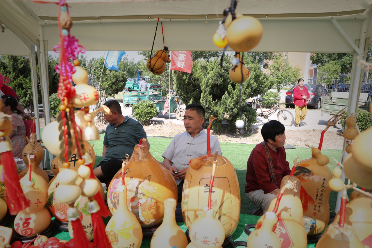 此次活动,以“乡村好时节·游购乡村”为主题,打造特色产品与非遗产品展区,为村民游客带来沉浸式乡村文旅新体验。玉玺农场老槐树酒、聚合居烤鸡等特色美食香气扑鼻,羽衣甘蓝油条、桑葚炉包等创新小吃深受欢迎,万亩良田优质农产品、桑葚系列制品集中亮相,葫芦刻画、剪纸、泥老虎、扑灰年画等非遗技艺绽放文化魅力,全方位展现了高密特色乡村文化的独特韵味。