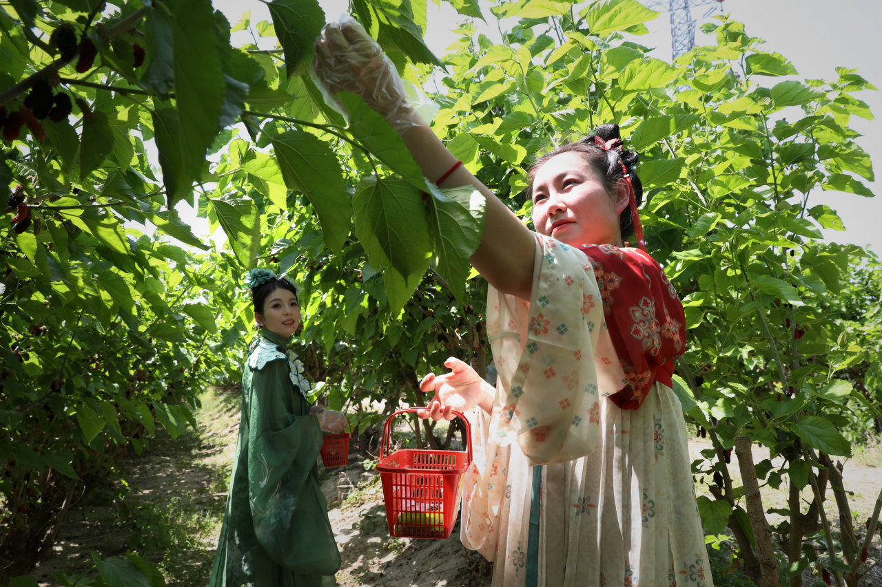 活动当天,“早有耳闻”“大卿”等14个大型桑葚采摘园迎来客流高峰。周边村民纷纷赶来体验家门口的田园闲趣,外地游客慕名而来,亲手采摘新鲜桑葚,感受丰收喜悦,网红主播也纷纷入驻,通过直播镜头向网友展示采摘乐趣,分享乡村生态之美,让咸家桑葚园成为热门“打卡地”。